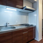 狭いキッチンで背面収納まで引き出し式にすると、動線が詰まりやすくなります。